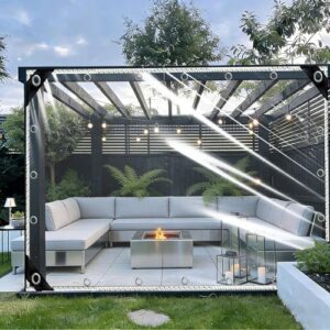 透明シート 透湿防水シート 175 x 355 cm 400G㎡防風水屋外の雨よけ雨避け塵寒雪よあめ明Pvc屋外の飛沫止花粉症対策保護ロプ付き适用于園芸用ガデニング庭店舗農業避難所住宅, A