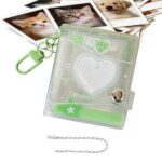キーチェーンフォトアルバムは、ハートデザインの24ポケットクリアアルバムで、2インチの写真を収納できます。学校旅行の思い出に最適です。