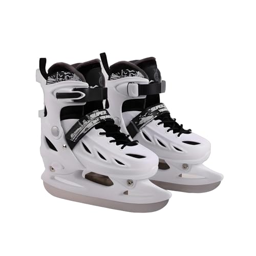 NIELHYUNのフィギュアスケート靴は、サイズ調整可能で初心者にも最適。男女兼用で、ホワイトカラー。子供用や大人用に対応し、アウトドアにも適しています。サイズはS(16.5-20.5CM)、研磨済みで滑りやすいです。