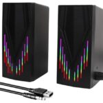 YXHDZ ブラックコンピュータスピーカーは、USB電源で動作し、カラフルなRGB照明と3.5mm AUXケーブル付き。ゲーミングやデスクトップPCに最適。