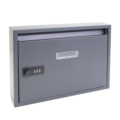 郵便ボックス 壁掛け ダイヤルロック式 横型 郵便受け 暗証番号 メールボックス 盗難対策 郵便ポスト メールポスト 薄型 (グレー)