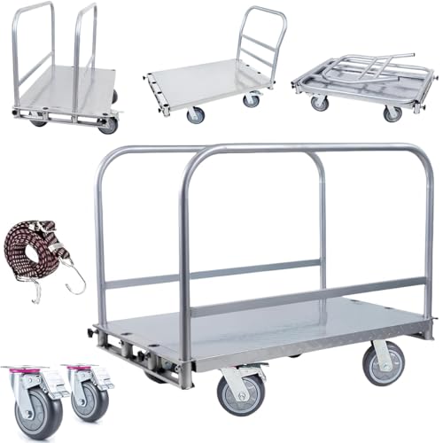 TUIYIDUO ボード台車 大型 長尺物 全鋼構造 耐荷重1000kg 手押し台車 2in1デザイン ボード運搬車 ガラス運搬用頑丈石膏板カート 多機能性 6インチゴム製キャスター ブレーキ付き 静音 360度回転 折りたたみ収納 業務用 工場 家庭 多用途板車(銀,90*60*71.5cm)の高価買取