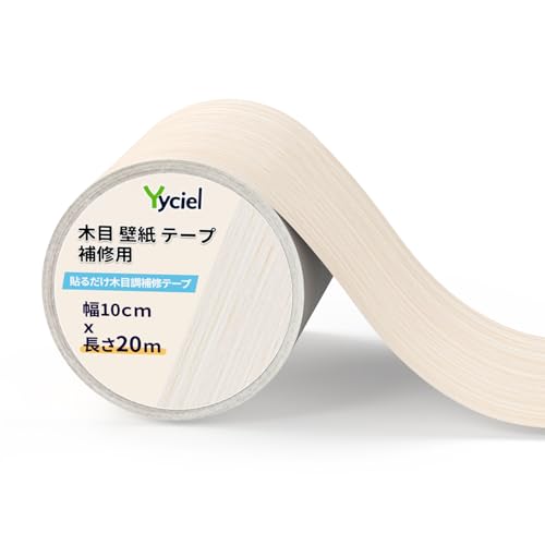 Yycielの木目マスキングテープは幅10cm、長さ20m、厚手で防水・防油機能を備えています。強い粘着力でフローリングや壁紙の補修、窓枠のリメイクに最適なクリーム色のテープです。