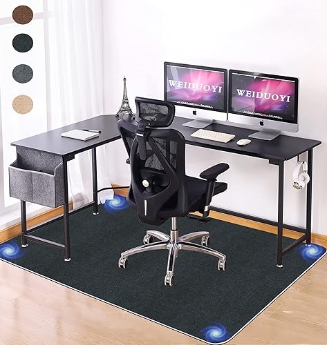 WEIDUOYI のチェアマット(100×140cm)は、厚さ4mmで床を保護。椅子の下に敷くことで傷や凹みを防ぎ、滑り止め機能付き。丸洗い可能で、セルフ粘着タイプのデスクマット(ブラック)。