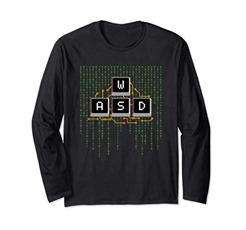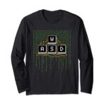 WASDキー配列が特徴のPCゲーマー向け長袖Tシャツ。男女兼用、キッズサイズもあり。快適な着心地で、スタイリッシュなデザインが魅力。ゲーム好きな方へのギフトにも最適です。