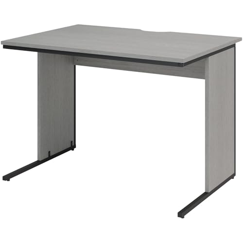 オフィスコムのデスクは、幅1000×奥行700×高さ700mmの平机で、配線スリットが付いています。スチール脚のワークデスクで、事務作業に適したグレイッシュなデザインです。