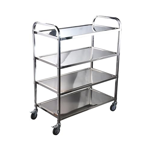Kirnuo ステンレスワゴンは、業務用の配膳カートで2/3/4段の選択が可能。キャスター付きで移動が便利、ブレーキ機能付き。大容量で耐荷重強化設計、ホテルやレストラン、厨房に適したアイテムです。(大,4層) [並行輸入品]