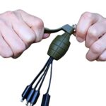 自衛隊グッズのキーリング付き充電ケーブル。グレネード型のマルチUSBコードで、機能性とデザイン性を兼ね備えています。カラーはグリーン、モデルはZAD005のFサイズです。