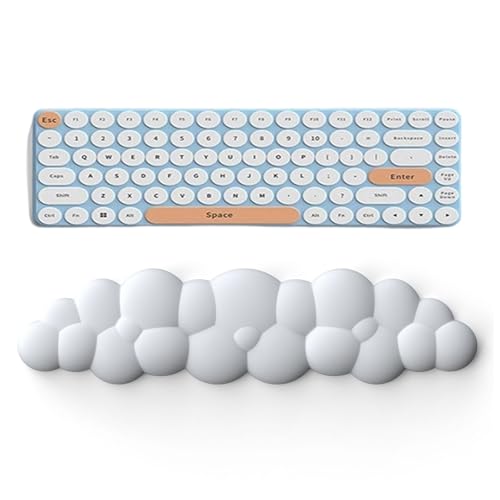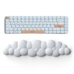 雲状のキーボードリストレストは、PU材質の低反発クッションで手首の疲労を軽減。滑り止めベース付きで安定性も抜群。マッサージホールがストレス解放をサポート。カラーはホワイト。