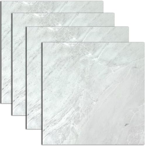 大理石風のフロアタイル。厚手3mmで45.7*45.7cmのサイズ、接着剤不要で簡単施工。吸着タイプ、カット可能で賃貸OK。防水・難燃・遮音機能あり。9畳対応で床暖房にも適応。