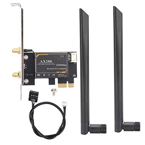 AX200 WiFiカードは802.11ax対応、PCIe X1スロット用。5.1 Bluetoothサポート、Linux対応で、デスクトップPC向け。大容量データ転送や8K動画視聴、スマートホーム機器の接続に最適。