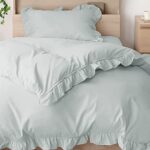 モダンデコの布団カバー3点セットは、掛け布団カバー、ボックスシーツ、枕カバーが含まれています。フリル付きでおしゃれなミストブルー色、ピーチスキン加工によるなめらかな肌触り。丸洗い可能で速乾性もあり、シングルサイズ。