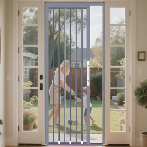 198 x 229 cmの折りたたみドア。ハニカムアコーディオンドアで耐久性抜群。防水、防錆、虫よけ機能付き。ペットの引っ掻きにも強く、穴あけ不要で設置簡単。玄関やリビング、キッチンなど、様々な場所で使用可能。