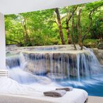 LB 森風景 タペストリーは、緑の木と滝のデザインで、おしゃれな壁掛けインテリアです。サイズは200x150cmで、多機能な布ポスターとして部屋飾りやカーテン、間仕切りに最適。個性ギフトにもぴったりです。