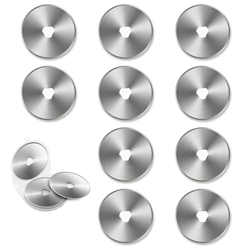 ZHICHUANGWのロータリーカッター替刃は、45mmサイズの10枚セット。SKS7鋼製で高耐久、オルファ互換の優れた切れ味。手芸、革、布、ペーパー裁断に最適な多機能ツール。収納ケース付きで便利。
