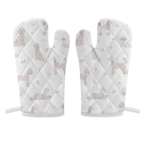 オーブンミトン トイプードル柄の耐熱ミトン2枚セットです。左右兼用で、やけど防止設計。滑り止め機能付きで、キッチンやバーベキューに最適。かわいいデザインでクッキングを楽しくします。