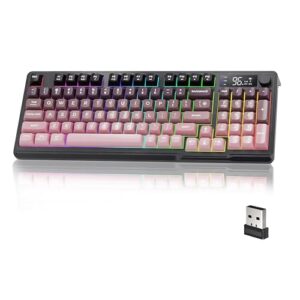ATTACK SHARK x FREE WOLF M96 ゲーミングキーボード、メンブレンキーボード、ワイヤレス2.4G/Bluetoothダブルモード無線キーボード、PBT 三色パッチワークキーキャップ、RGBキーボード、96キー配列、ボリュームノブや電子ディスプレイ付き、3000mAhバッテリー、iOS/Android/Mac/Windows対応の仕事PC用 オフィス ピンク