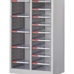 / PANCY フロアケース 書類収納 完成品 2列14段 クリア引き出し 幅54.5cm×奥行34cm×高さ86.7cm 混合引き出し 鋼材の厚さ1.3mm オフィス収納 書類ケース スチール製