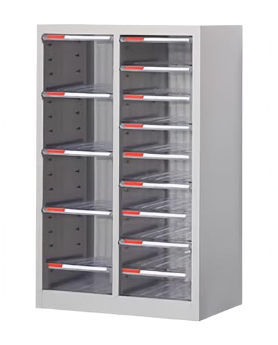 PANCY フロアケース 書類収納 完成品 2列14段 クリア引き出し 幅54.5cm×奥行34cm×高さ86.7cm 混合引き出し 鋼材の厚さ1.3mm オフィス収納 書類ケース スチール製の高価買取