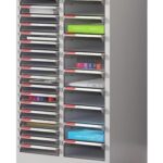 PANCYフロアケースは、幅54.5cm、奥行34cm、高さ86.7cmの2列27段のクリア引き出しを備えた完成品です。混合引き出しで、厚さ1.3mmの鋼材を使用したスチール製のオフィス収納書類ケースです。