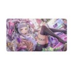 可愛いアニメ柄のVTuber、むらさきシオンの大型ゲーミングマウスパッド。サイズ40x75cm、耐久性抜群で滑り止め加工。撥水・防水で、光学式マウス対応。エッジが強化され変形防止設計。
