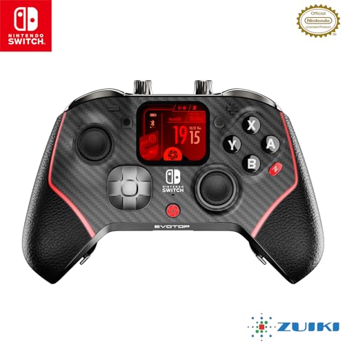 EVOTOP Black ゲームコントローラーは、Nintendo SwitchとPCに対応した任天堂ライセンス商品です。多機能LCDタッチスクリーン、ワイヤレス・有線接続が可能で、Proコントローラーとして使用できます。充電ドックも同梱されています。