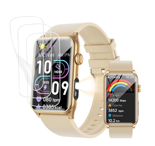 aumesovi スマートウォッチは、2025年のBluetooth5.4対応、通話機能付き。1.57インチの大画面、3枚入りの高感度保護フィルムは高透明度、反射低減、指紋防止の柔軟液晶保護フィルムです。
