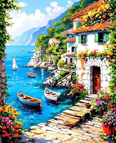 数字油絵キット、花のデザイン。大人や初心者、子供向けで、アクリル水彩絵具使用。簡単に塗れる。サイズ40x50cm(フレームレス)。3本のブラシ付き。ホームやオフィスの装飾、ギフトに最適。