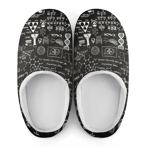 科学柄のメンズスリッパ。数学数式や物理・化学の方程式デザイン。履き心地良く、暖かい綿素材。おしゃれで滑り止め付き、洗える。サイズ7-8(40-41)。自宅用に最適。