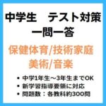 中学生向けの保健体育、技術家庭、美術、音楽のテスト対策一問一答集です。中学1年生から3年生まで対応。理解を深めるための重要ポイントを押さえた効果的な学習ができます。