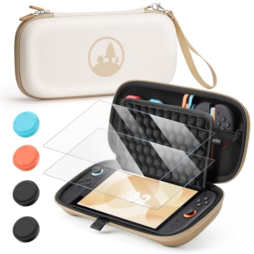 2025年登場のSwitch 2対応の最強保護ケース。保護フィルム2枚、スティックカバー4枚付き。ハニカムパネルで耐衝撃、防塵防水。ゲームカード10枚収納可能。外出や旅行に最適。