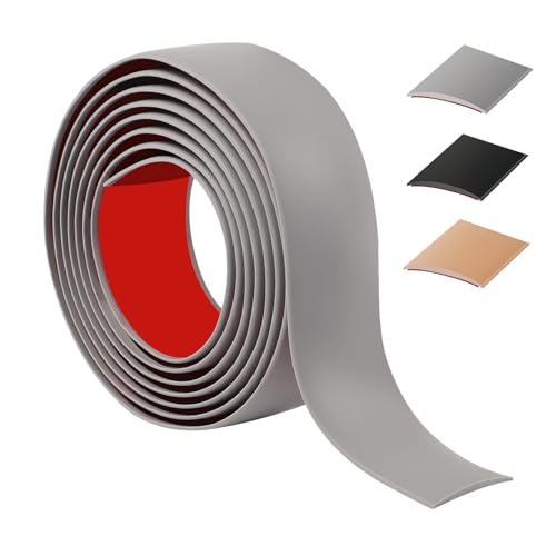 200cmの自己接着型フロアトランジションストリップ。PVC製で柔軟性があり、キッチンやリビング、バスルーム用。4cm幅の灰色で、フロアの隙間やタイル、カーペットをつなぎます。