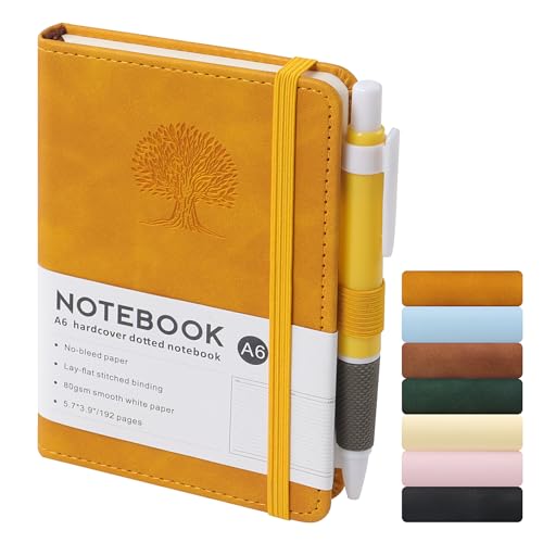 ZTOWOTO ツリーハードカバーA6ノートレザー、5.7×3.9 “小さな裏地付きジャーナルノート 192厚ページペンループ付き、勉強、オフィス、ライティング、旅行記録に最適(ダークグリーン)の高価買取