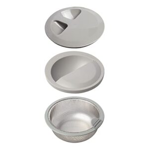 【排水口すっきり3点セット】Belca 日本製 排水口 流し用ミズドメ・止水フタ 直径(外径)15×高さ2.8cm + 排水プレート 半円タイプ 直径14.4×高さ4.4cm + ステンレス浅型ゴミカゴ 直径13.5×高さ5.8cm 排水口の直径14.5cm用 グレー SP-235T