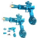 2025年新型電動水鉄砲。秒間4連射、飛距離8-10m。LED灯光噴火効果、500ML貯水タンク、全防水構造、可拆式電池。水遊びや海水浴に最適!男女問わず人気のプレゼント。