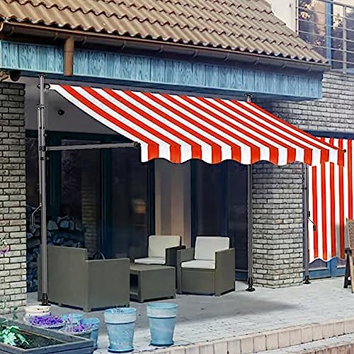 TRAGLO オーニングテント 日よけ 巻き取り式 サンシェード 簡単設置 UVカット 突っ張り 屋外 オーニング・シェード 幅2m/2.5m/3m/3.5m/4m 角度 高さの調節が可能 日除け 雨よけ UVカットコンパクト 2M 赤と白のストライプ 高価買取中