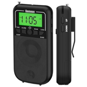 Gemean J-121 ポータブルラジオAM FM小型、LED懐中電灯付き スリープタイマー付き アラーム付き トランジスタ、携帯、長距離受信用、屋内、屋外、散歩、ジョギング、ジム、キャンプ用緊急ポケットウォークマン(黒)