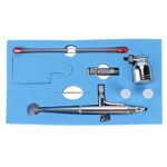 デュアルアクショントリガーエアブラシキットです。0.2/0.3/0.5mmのノズルを搭載し、タトゥーやメイク、ネイルアートに最適。高精度なスプレーで、モデル制作や絵画も楽しめます。