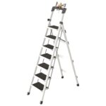 AetherTechの7段脚立は、軽量で耐荷重性が高く、滑り止めと安全ロック付き。折りたたみ式でコンパクト、室内外で使用可能。工具置き場が付いており、おしゃれなデザイン。