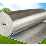アルミ箔断熱マット(サイズ:1x30m)は、高い熱反射性能を持ち、屋根下や壁面に設置可能。防暑対策や保冷・保温に効果的なアルミ遮熱シートで、ダクトの保温にも最適です。