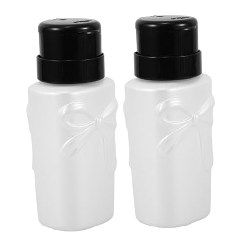 Healvianの詰め替え可能ポンプディスペンサーボトル2個セット。ロック付きで持ち運びも安心。かわいいリボンデザインで、ネイルポリッシュリムーバーやメイクアップクリーナーに最適。