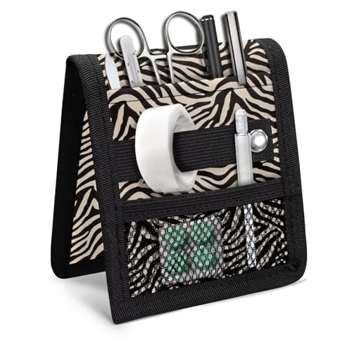 PCSJRKG ゼブラプリント ベージュ ブラック 看護師用オーガナイザーポーチ 看護師用 収納ポケットオーガナイザー 看護師 複数のポケット付き ユーティリティツール 病院用ポケットポーチ