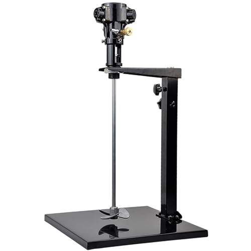空気圧塗料ミキサーはスタンド付きで、高さ調節可能。ステンレススチール製のミキシングブレードが粘性液体のインクや染料を効率的に撹拌します。