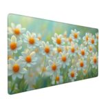 白い花デザインの大型ゲーミングマウスパッド。サイズ600x300x3mm、防水・滑り止めゴム底で耐久性あり。汚れにくく、高精度トラッキングを実現。洗えるため、オフィスやゲーム、PC使用に最適。