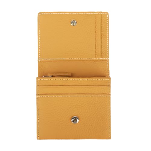 imeetu 財布 二つ折り財布 レディース 本革製のRFIDスキミング防止機能付き。L型ファスナーでコンパクトなデザイン。旅行や日常使いに最適な多収納で、小銭やカード収納にも便利なサフランイエローのミニ財布。