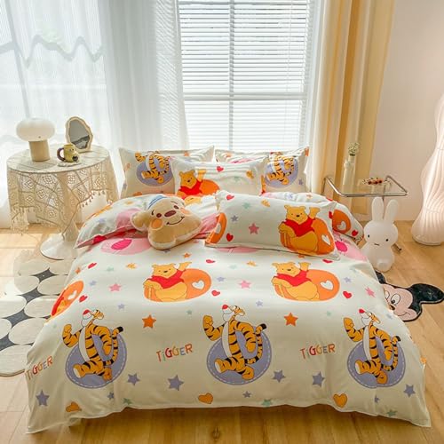 くまのプーさんデザインの掛け布団カバー3点または4点セット。肌触りが良く、抗菌作用、洗濯可能。四季を通じて使用可能で高密度の通気性。セミダブルサイズ対応、防ダニ加工。